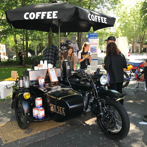 The Seeseemotorcoffee Bike Hit The Streets Of Portland Last Weekend On Its Maiden Voyage The Custom Coffee B Carritos De Comida Carritos De Cafe Carro Comida